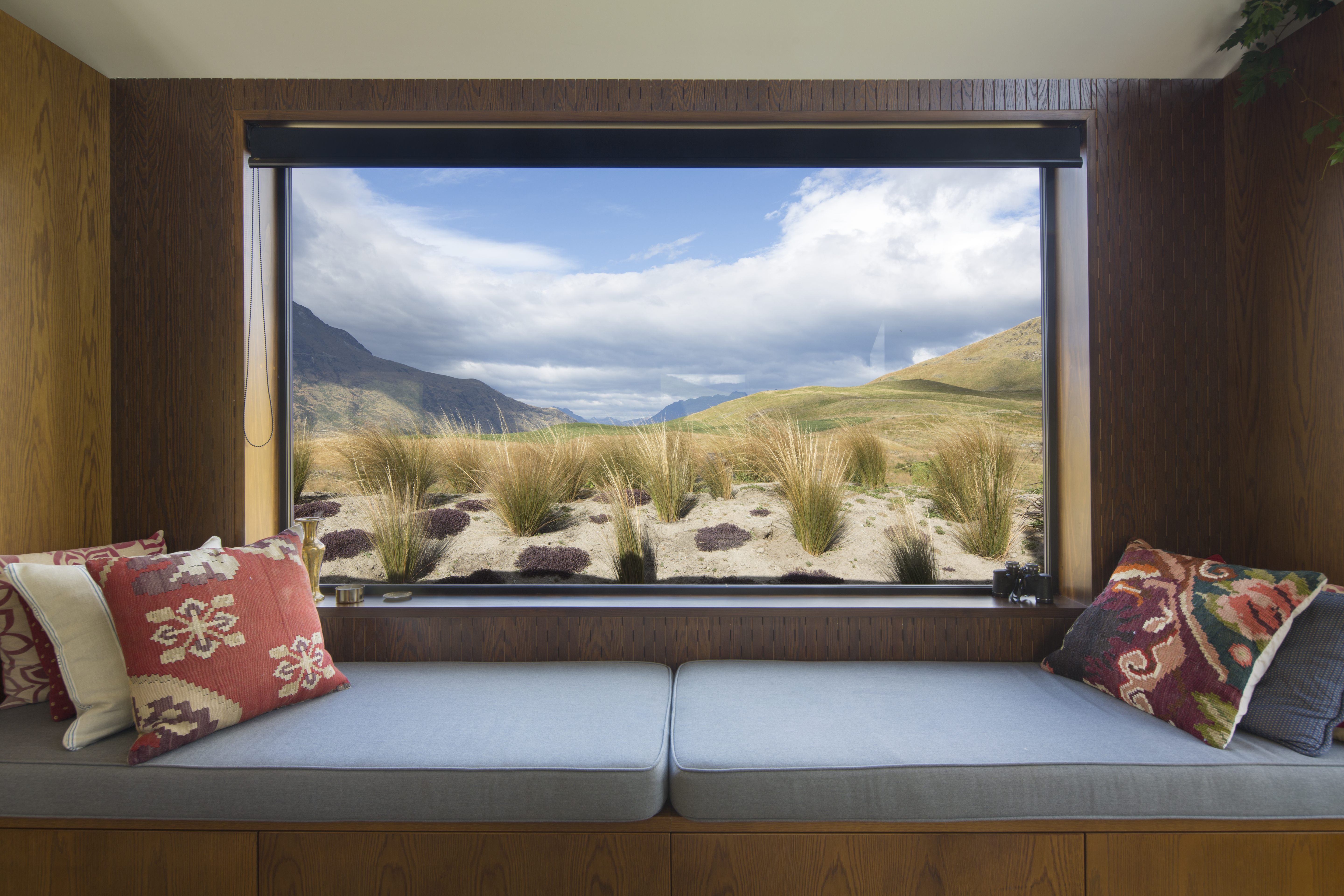 Arranged in a shallow U shape facing north and west, the home is a collection of 3 linked pods; with family living at one end, the bedroom wing in the middle, and the internally accessed double garage at the opposite end with additional loft space over. With its back to the South, the shape also protects the outdoor spaces from the extremes of mountain weather